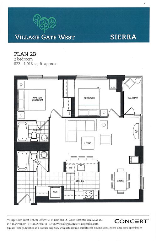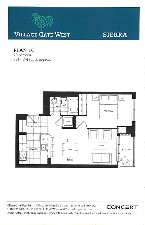 Located in a transit-oriented community, Sierra offers stylish, spacious apartment rentals with exceptional amenities available for all residents to enjoy. Choose from Studio, One Bedroom, and Two Bedroom homes.Spacious and thoughtfully designed, each home comprises open floorplans with modern finishes and in-suite laundry. Kitchens feature full-size appliances, including dishwasher.Sierra is located within Village Gate West, a master-planned community by Concert Properties, nestled in peaceful central Etobicoke near Islington Station. Village Gate West is situated on 3.7 acres and encompasses almost 1,000 rental homes that overlook a central landscaped plaza.This is a pet friendly property.Enjoy peace of mind knowing that your home is professionally managed by Concert Realty Services Ltd., with a dedicated on-site Resident Services team and our Concert-On-Call service, available 24/7 for your comfort and need.