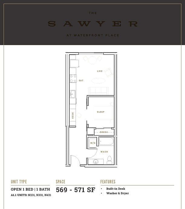 Yes, Waterfront Place has in-unit laundry for some or all of the units.