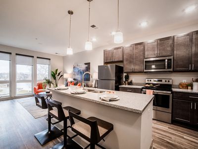 Metropolitan Fishers offers the ultimate in apartment living. Lush landscape is wonderfully accented by a wooded creek. Conveniently located within minutes of major malls and businesses, restaurants, and the sought-after Hamilton Southeastern School District. You'll be met with private entrances and spacious floorplans. Our ambitious list of amenities ensures our residents always have something to do! Complete with resort-style pool and sundeck, 24-Hour fitness center, tennis court, volleyball court, community barbeque, coffee bar, and more! So, what are you waiting for? Make yourself at home, at The Metropolitan at Fishers.