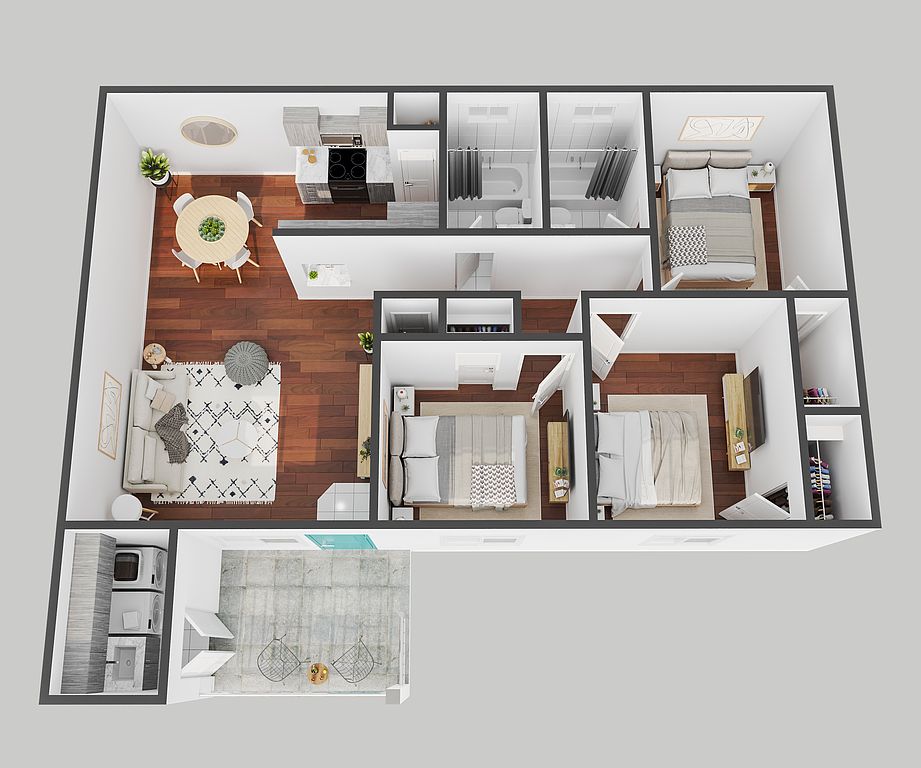 Our beautifully remodeled 2- and 3-bedroom apartments feature granite or quartz countertops, new cabinet facings, updated fans, faucets, lighting, and blinds, plus washer and dryer connections in most floor plans.