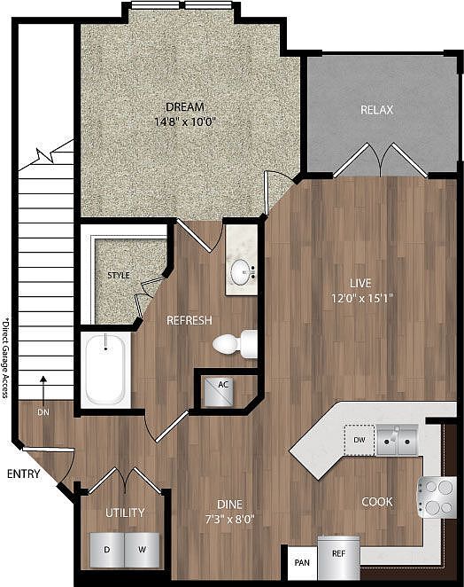- Trendy Hardwood-style Flooring And Plush Carpeting