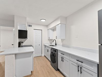 Ample counter spaceQuiet office spaceEasy maintenance tile flooringDining room combination