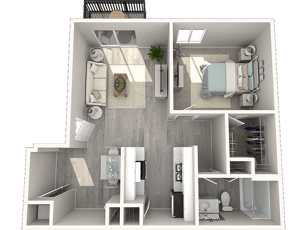 Balcony or patioIn-home washer and dryerHardwood and tile flooringCeiling fansWalk-in closets