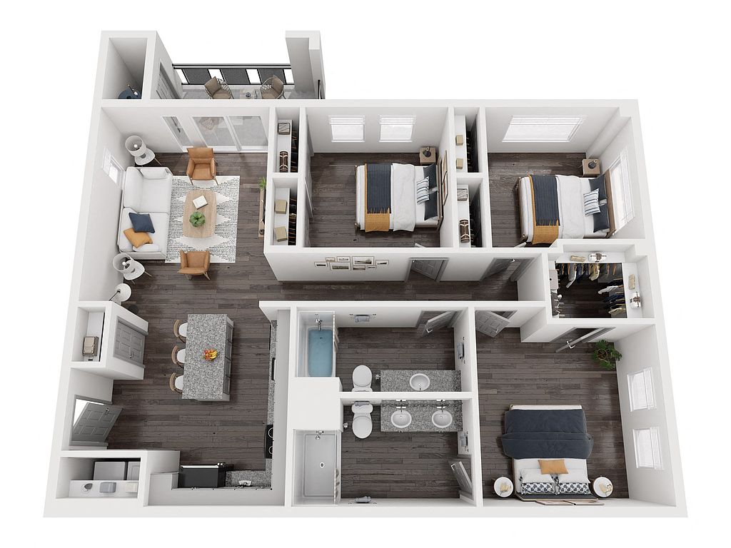 Price shown is Base Rent. Residents are required to pay: At Application: Admin Fee ($250.00/unit); Application Fee ($50.00/applicant, nonrefundable); At Move-in: Security Deposit (Refundable) ($300.00/unit); Access Device ($30.00/device); Monthly: Electric-3rd Party (usage-based); Sewer (usage-based); Water (usage-based); Trash-Hauling (varies); Common Area-Electric (usage-based); Common Area-Gas (usage-based); Pest Control ($3.00/unit); Package Services ($3.00/unit); Internet ($70.00/unit); Utility-Billing Admin Fee ($5.50/unit); Renters Liability Insurance-3rd Party (varies). Please visit the property website for a full list of all optional and situational fees. Floor plans are artist's rendering. All dimensions are approximate. Actual product and specifications may vary in dimension or detail. Not all features are available in every rental home. Please see a representative for details.