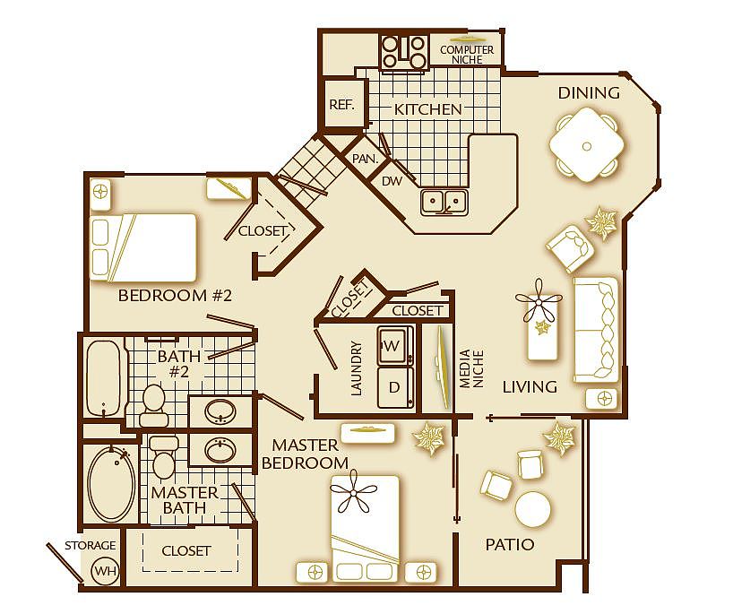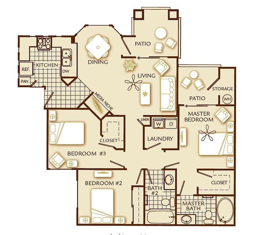 Relax by our shimmering pool with cabanas and lush landscaping, unwind in the state-of-the-art entertainment and media room, or stay active in our modern fitness center. Our newly upgraded homes now feature stylish white cabinetry throughout, adding a fresh, clean look to your kitchen and bathroom spaces. Each spacious one, two, or three-bedroom residence is crafted with attention to detail and includes large closets, private patios or balconies, full-size washers and dryers, and premium finishes that make every day feel like a luxury escape.