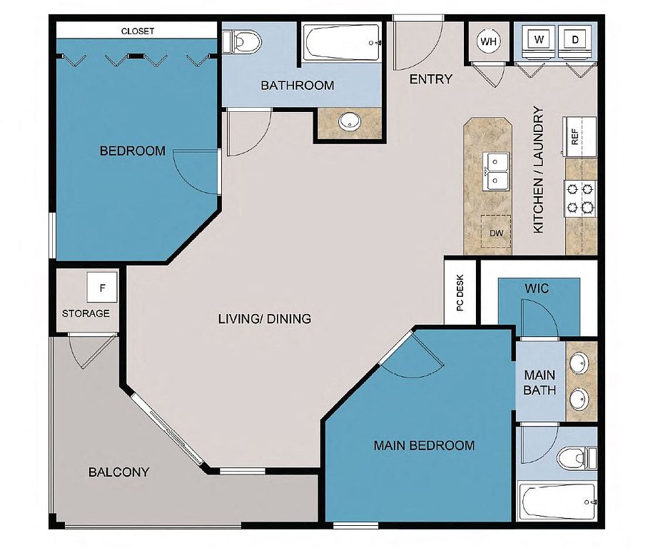 In-unit washer and dryerPrivate patio or balconyBuilt-in computer deskFully-equipped kitchenAmple storage
