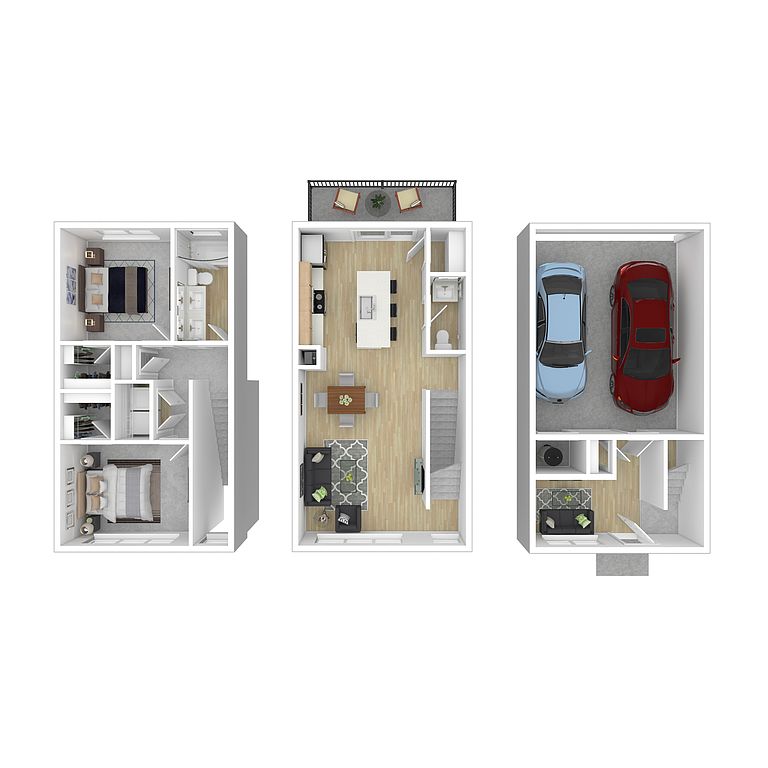 Whitman Villas offers a selection of spacious 3-story townhomes ranging from 2-bedroom, 1.5-bath (1,285 sq. ft.) to 3-bedroom, 3.5-bath (1,507 sq. ft.). Each home features high-end finishes, modern layouts, and a private two-car garage.