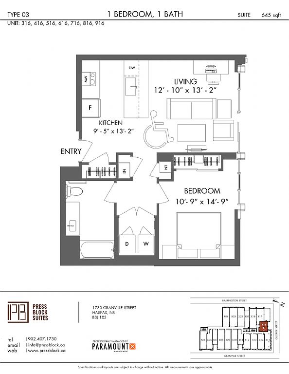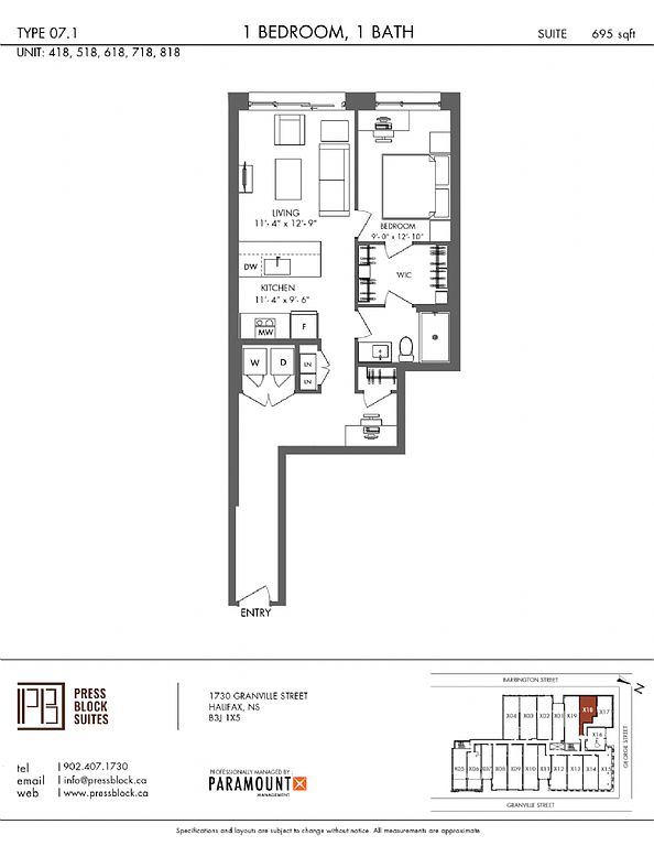 The Press Block offers modern 1, 2, and 3 bedroom pet-friendly apartments and premium townhouses in downtown Halifax's vibrant arts district. Located at the historic intersection of Barrington, George, and Granville streets, this landmark blends rich newspaper publishing history with striking contemporary design.