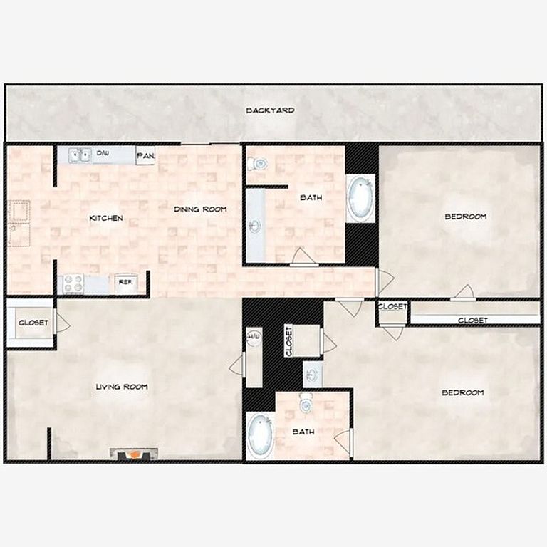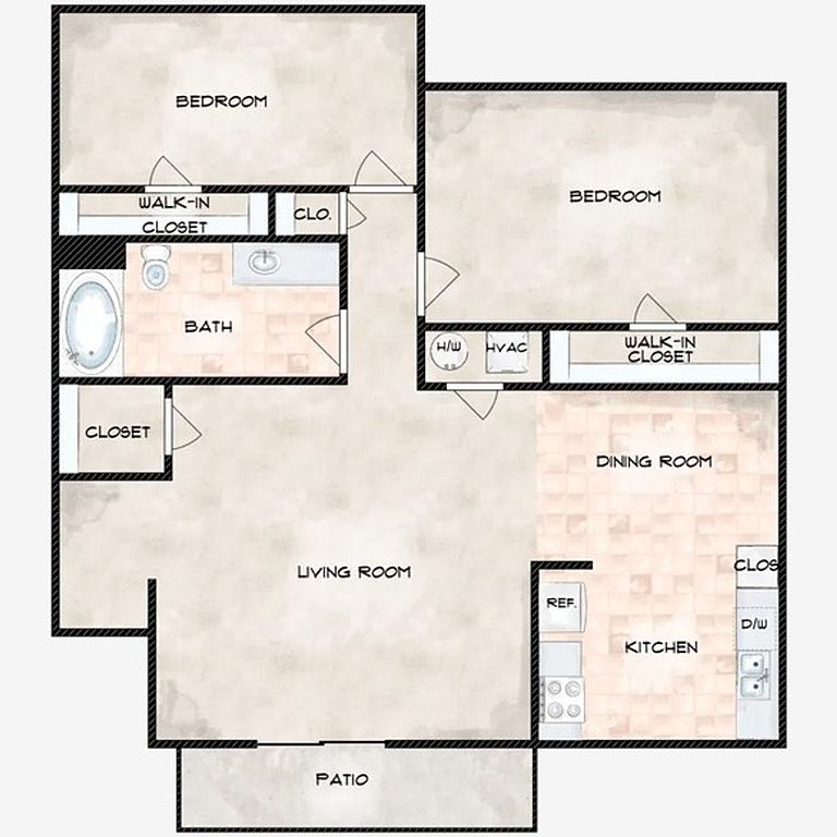 2 bd2 ba1K sqft