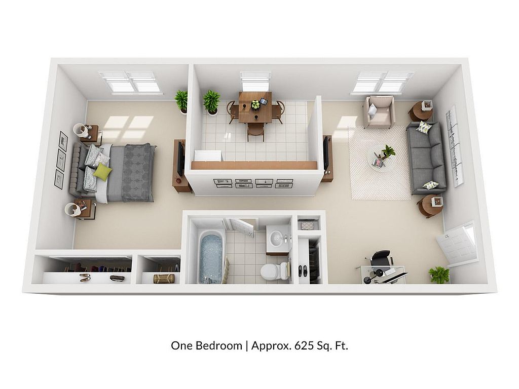 Apartments are newly renovated and feature updated kitchens and bathrooms.