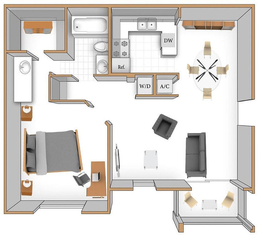 Studio 1 ba500 sqft