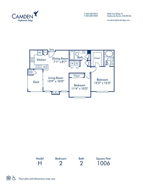 The schools assigned to Camden Highlands Ridge include Cougar Run Elementary School, Cresthill Middle School, and Highlands Ranch High School.