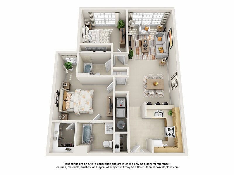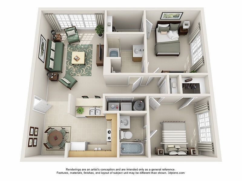 Price shown is Base Rent. Residents are required to pay: At Application: Application Fee($65.00/applicant, Nonrefundable); At Move-in: Admin Fee($250.00/unit, Refundable); Security Deposit Alternative(Varies); Monthly: Pest Control($5.00/unit); Renters Liability Insurance-3rd Party(Varies); Trash-Doorstep($35.00/unit); Internet($75.00/unit); Utility-Billing Admin Fee($3.75/unit); Electric-3rd Party(Usage-Based); Water/Sewer(Usage-Based). Please visit the property website for a full list of all optional and situational fees. Floor plans are artist's rendering. All dimensions are approximate. Actual product and specifications may vary in dimension or detail. Not all features are available in every rental home. Please see a representative for details.
