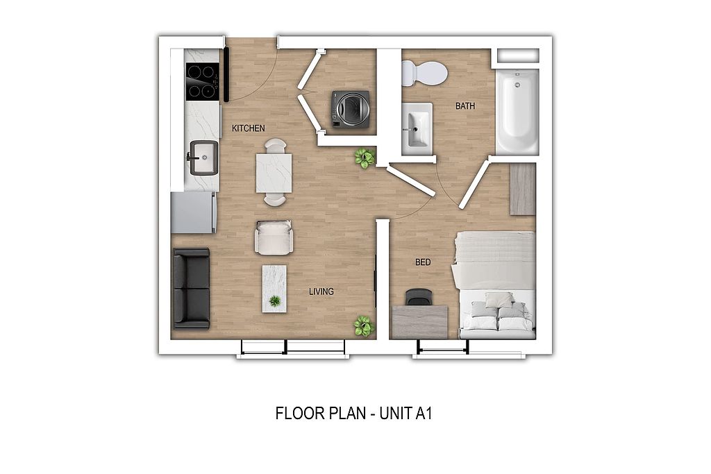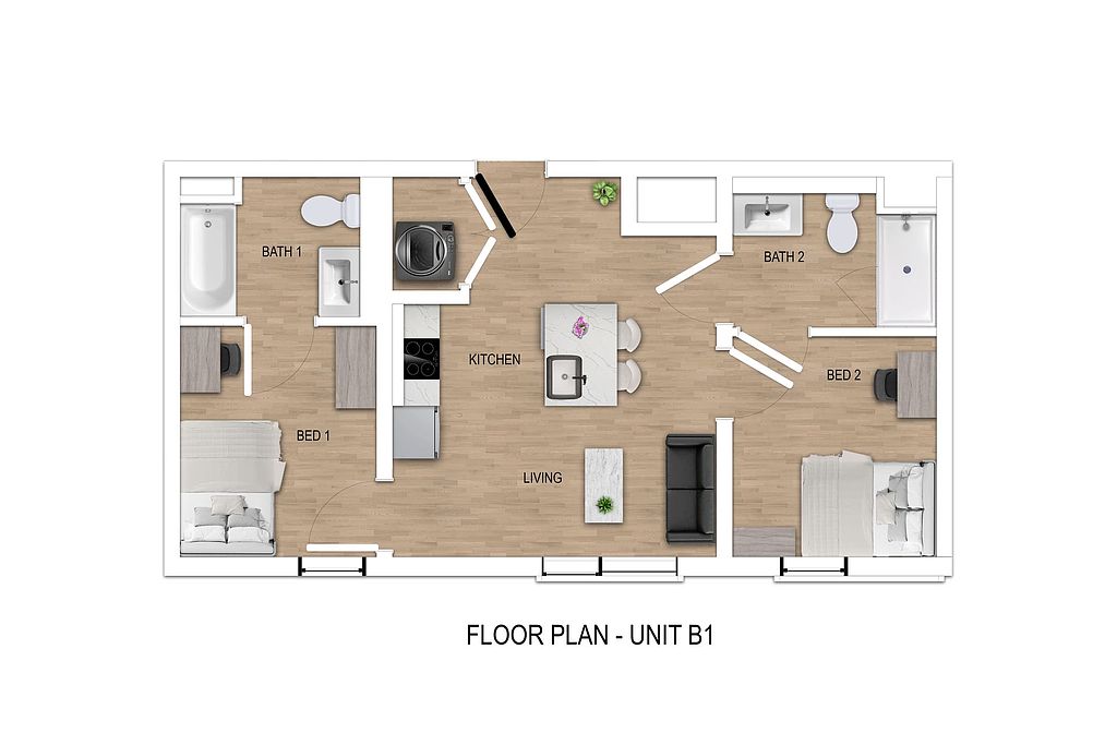 Every apartment is fully furnished and features stainless steel appliances, an in-unit washer and dryer, and floor-to-ceiling windows that flood your space with natural light.