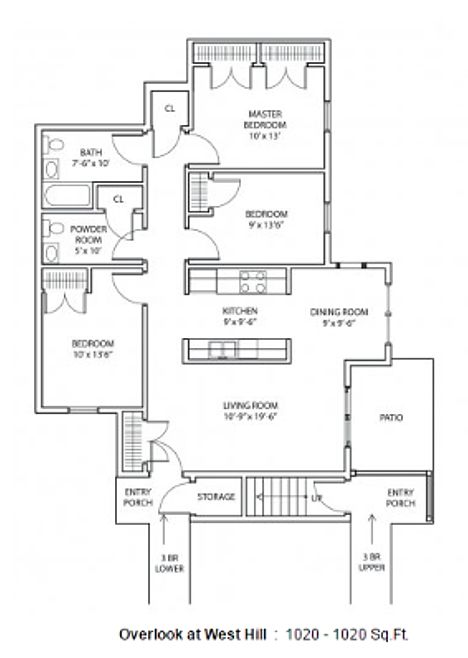 2 bd1 ba1K sqft