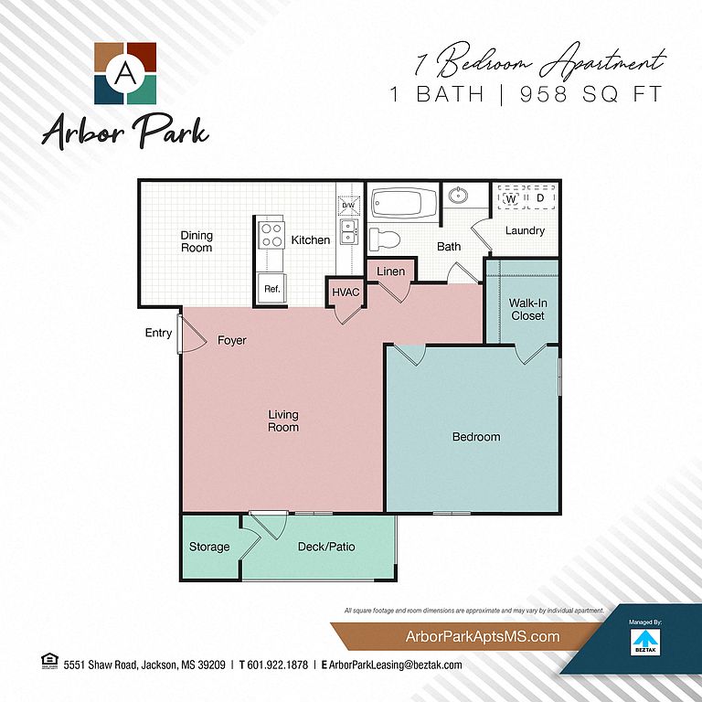 This property is managed by Beztak, 2025 recipient of the US Best Managed Companies for the sixth year in a row, sponsored by Deloitte Private and The Wall Street Journal. Call and let us tell you why! Enjoy living the good life at Arbor Park! Located in Jackson, our spacious one, two, and three bedroom apartments were designed with your unique lifestyle in mind. With features like fully equipped kitchens, large closets, and a private patio or balcony, itas easy to see why our residents love living here. Our community features plenty of opportunities for relaxation and recreation, including a clubhouse, swimming pool, and playground.