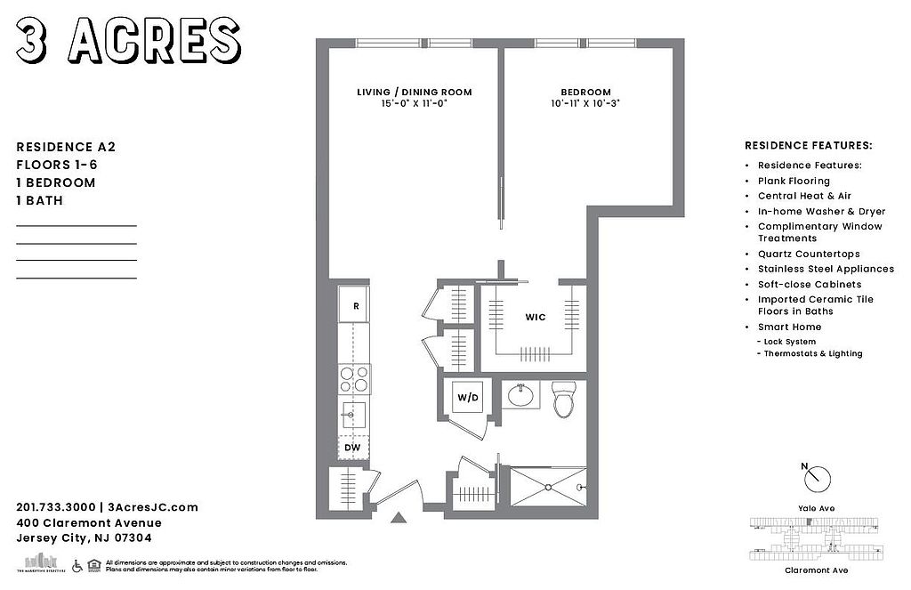 Located in the West Side of Jersey City, 3 Acres is near small businesses, family-owned restaurants, bars, cafes, a short walk away from Lincoln Park, and conveniently located less than a minute away from the Light Rail Station with complimentary shuttle service to the PATH.