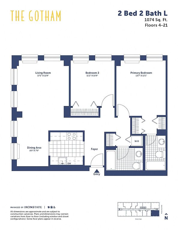 The Gotham has a walk score of 98, it's a walker's paradise.