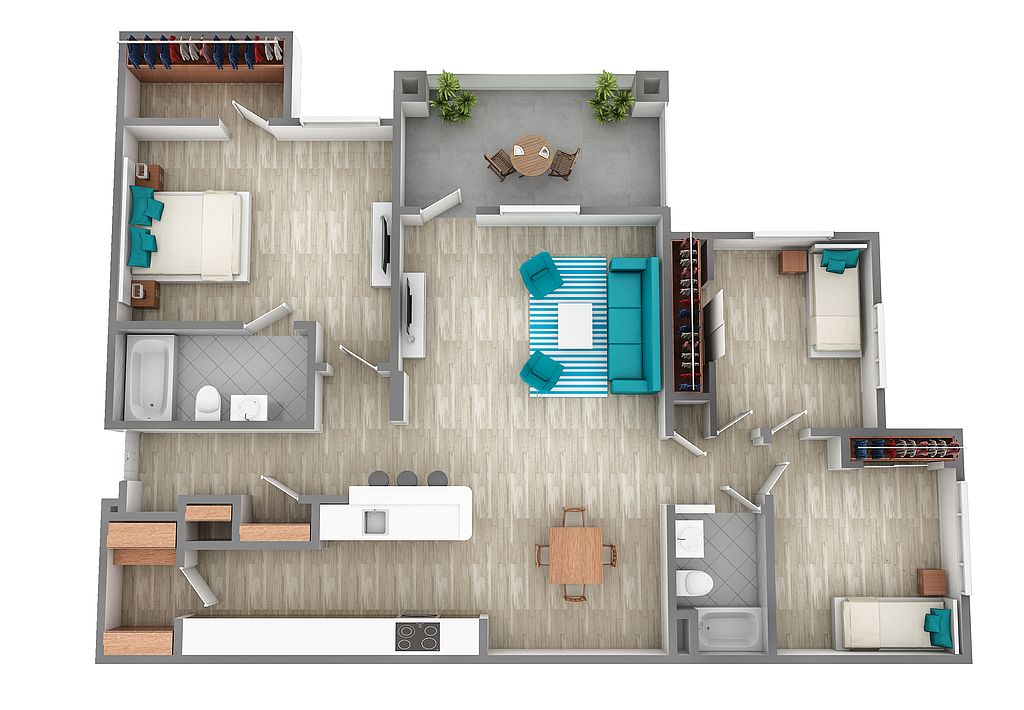 Open layoutsSpacious floor plan layoutsIn-home washer and dryersHome office areasResort-style poolPrivate patios and balconiesGourmet kitchens
