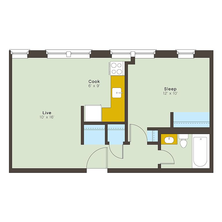 Alexander and its twin neighbor Cleopatra are Prairie Style residences built in the 1920s. Their distinctive facades contain sweeping horizontal bands of stucco and masonry capped by expansive clay tile roofs, which extend to offer shade to the broad 2-story porches overlooking the quiet, tree-lined sidewalks of Locust Street. Alexander and Cleopatra were renovated with a modern aesthetic that includes stainless steel appliances and maple cabinetry complemented by color-coordinating accent tile.