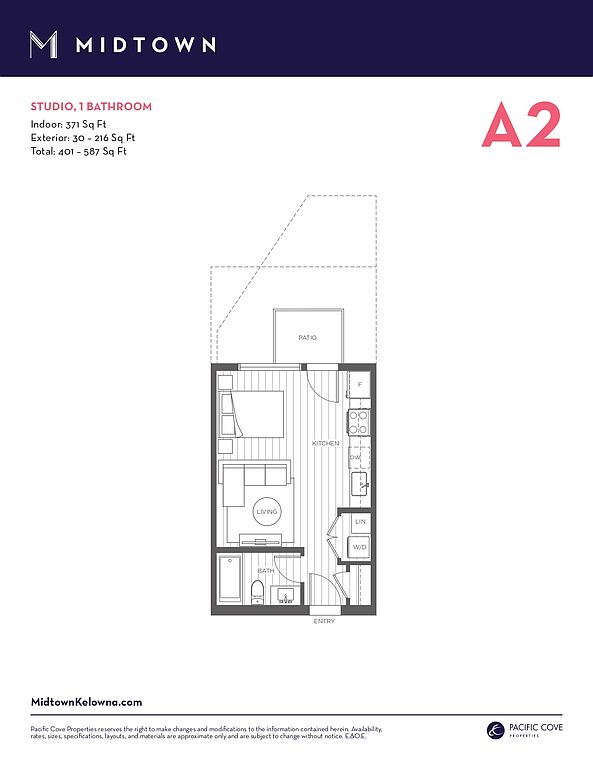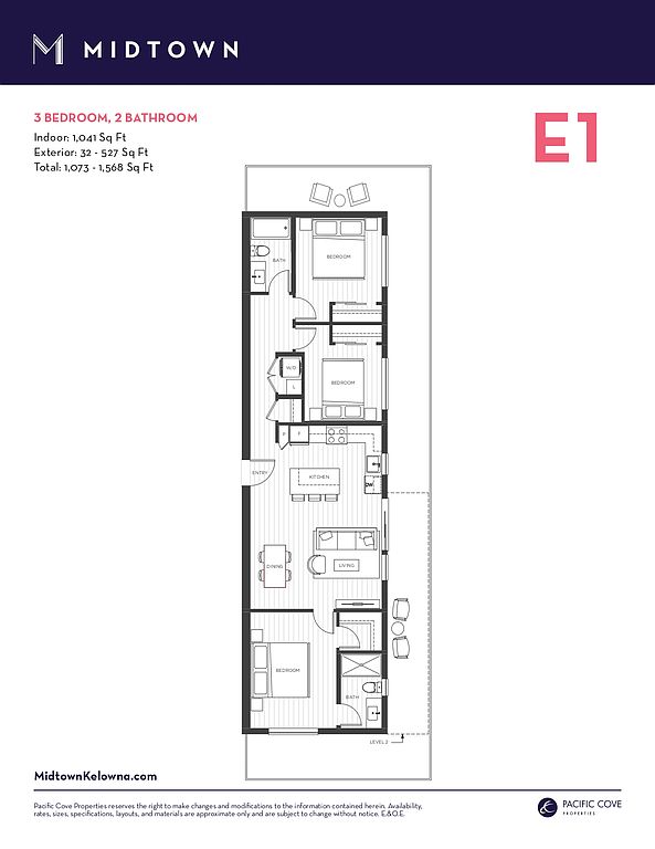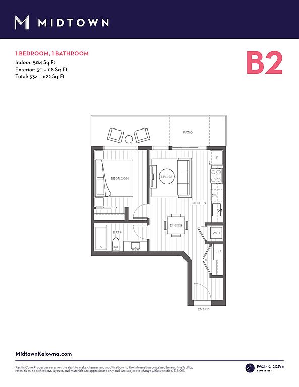 Enjoy 2 Months Free on Select SuitesBuild quality and smart layouts set Midtown apart suite features include: - Full-size Samsung appliances - Fridge with built-in ice-maker - Quartz countertops - In-suite laundry - Soft-close cabinetry - Central AC provides full-suite climate control - Secure fob entry system - Layouts designed for everyday convenience - Sound-reducing design for quieter living Select homes offer walk-in showers and full-size pantries for added functionality, while spacious interiors, large patios, and ample storage make settling in and staying organized effortless. We look forward to welcoming you soon! www midtownkelowna com * Terms and conditions apply. All offers are subject to change or end at the discretion of Pacific Cove Properties without notice. This promotion is available to new Midtown residents only and applies to select suites on approved 14-month lease terms. Offer cannot be combined with any other incentives unless otherwise stated. Pricing on shorter lease terms may differ, and additional monthly fees may apply. Pet restrictions apply. Photos shown may not reflect the exact suite available. All information is deemed accurate but not guaranteed.