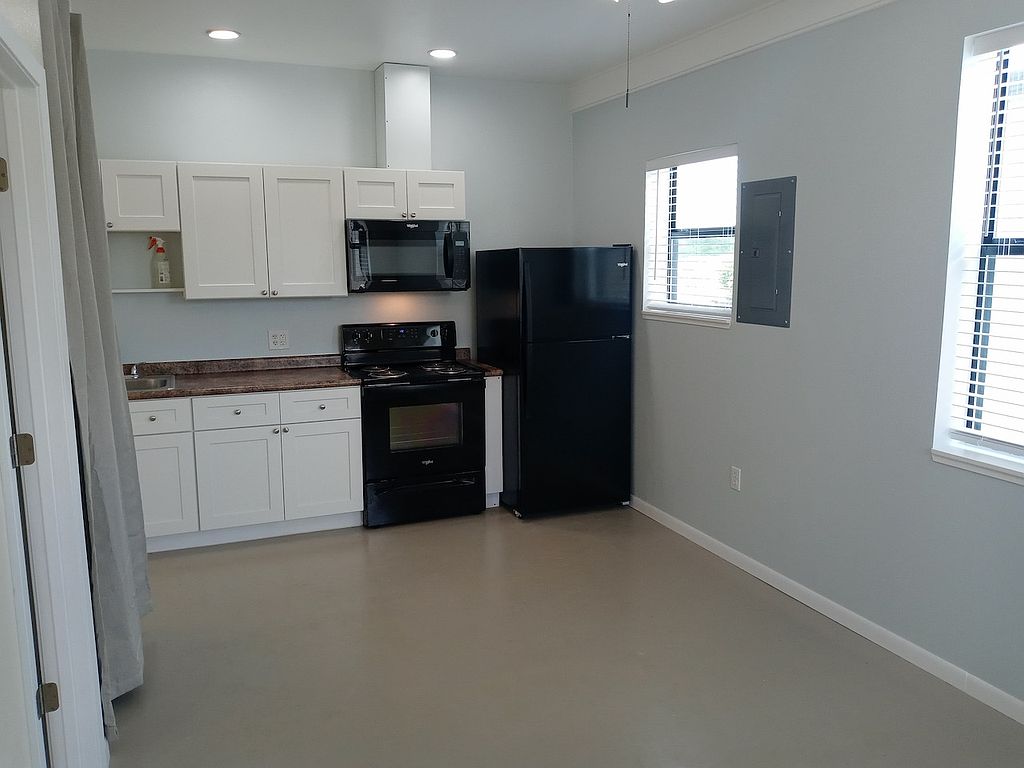 Recently built MINI-CABIN 400 sf rental with patio - efficient mini-split heat & air - vented microwave - Full size range - refrigerator - 9 ft ceilings - Bath/shower combo - dusk/dawn led porch lights - faux wood window blinds - 9 ft tall kitchen pantry - low E windows - Abundant insulation for lower energy use - Ceiling fans - LED dimmer lights - peaceful landscaped porch - convenient location just off of Main St/Highway 69 and 1 1/2 miles to center of Lindale. Water and waste included, tenant pays electric and optional cable. House ct welcome - no dogs. ONE CAR ONLY. Units work best with one person or parent with child. $925 monthly rent w/$600 deposit.. Application is available at the site. Yearly lease.
