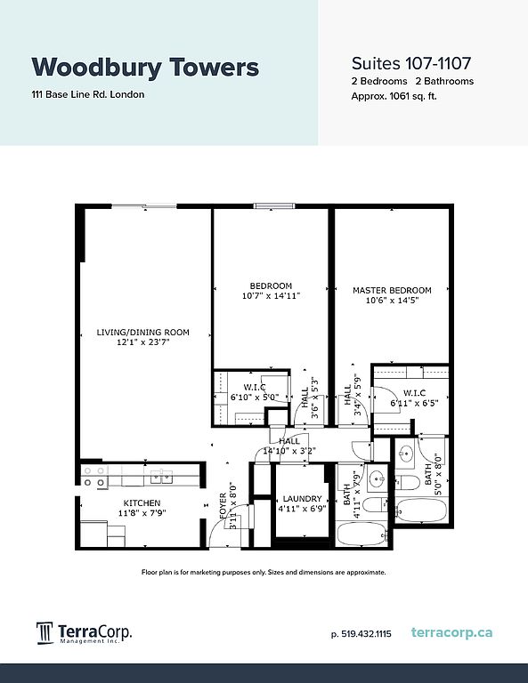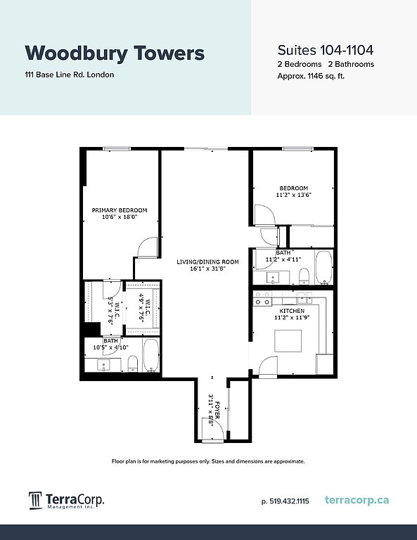 Situated on a well-landscaped property in a quiet neighbourhood is TerraCorp's Woodbury Towers apartment building, offering large renovated, modern suites.These bright and spacious London apartments are a short drive to downtown London, Wortley village, a number of convenient retail centres, and a variety of luscious parks making it an ideal location to call home.