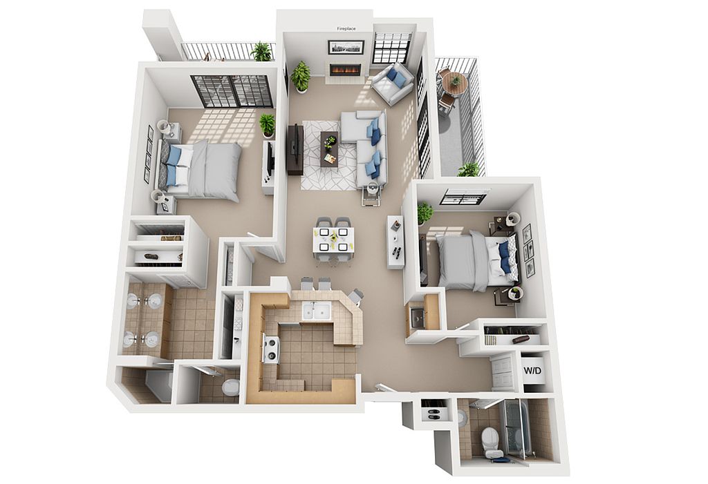 Each apartment residence within 555 Barrington exudes sophistication, boasting meticulously crafted floor plans. With soaring nine-foot ceilings, private balconies, large bathrooms, Italian ceramic tile entries and wood-burning fireplaces paired with the convenience of in-unit full-size washer and dryer, every detail exudes classic elegance.