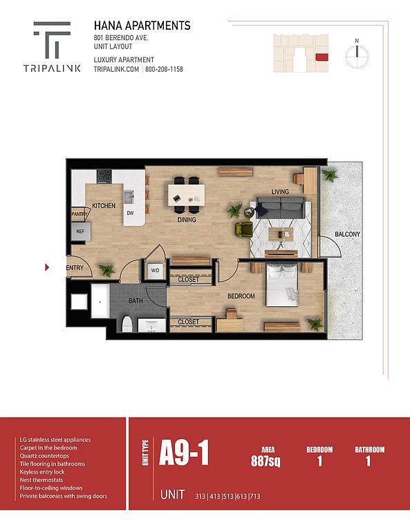 404 1 bd, 1 ba | 768 | Now | $2,333 |