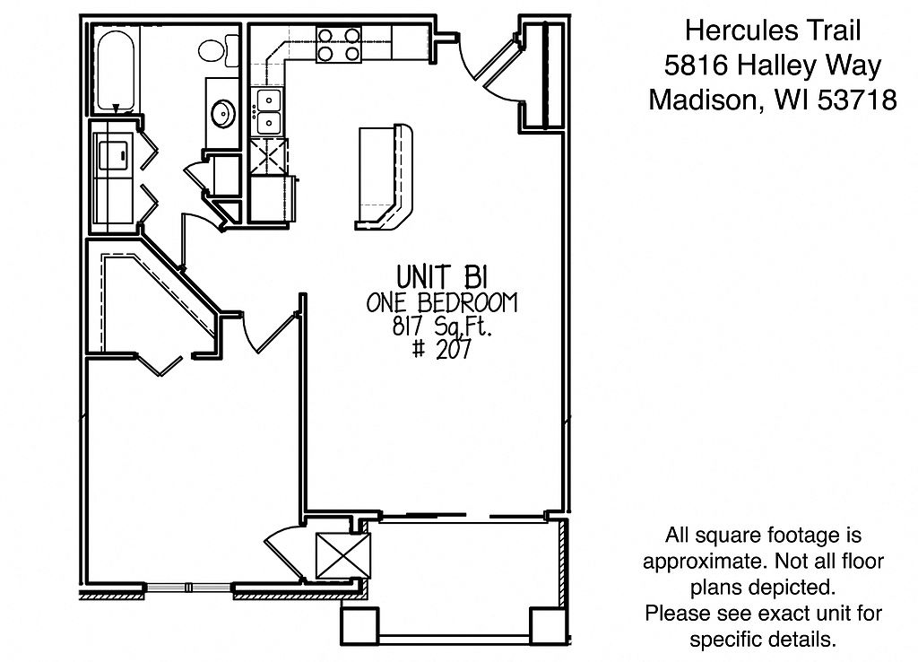 Hercules Trail is an upscale apartment community located in the highly desired neighborhood of Grandview Commons. It consists of unique studio, one bedroom, two bedroom, two bedroom plus den, and three bedroom apartments. Each apartment home features a gourmet kitchen, cherry cabinetry, stainless steel appliances, wood plank flooring, full size washer & dryer, gas heat & central air conditioning with programmable thermostat, underground heated parking, and additional garage storage. This community includes a fitness center and community room. This premier location also boasts a quick 10 minute drive to the East Towne Mall area, 15 minutes to Downtown, and a short walk to the Great Dane Pub & Metro Market.