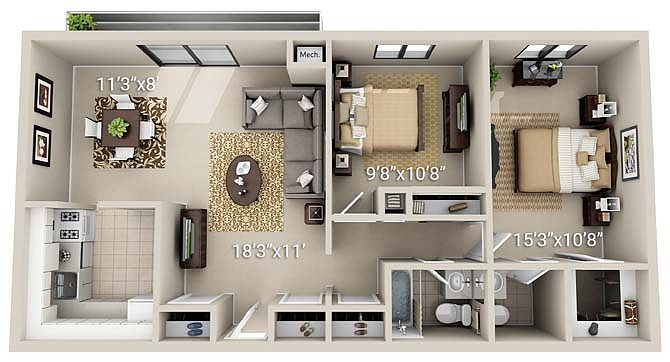 Spacious floorplansHeated outdoor poolOversized closetsGarbage disposalsCentral air conditioningPrivate patios or balconies