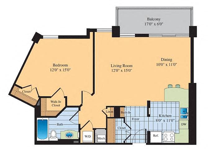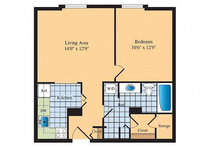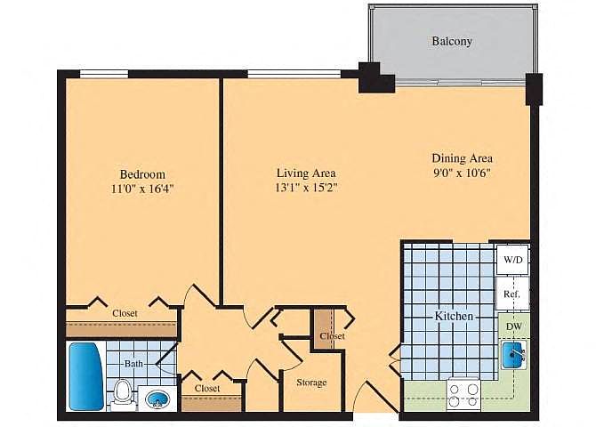 Studio 1 ba585 sqft