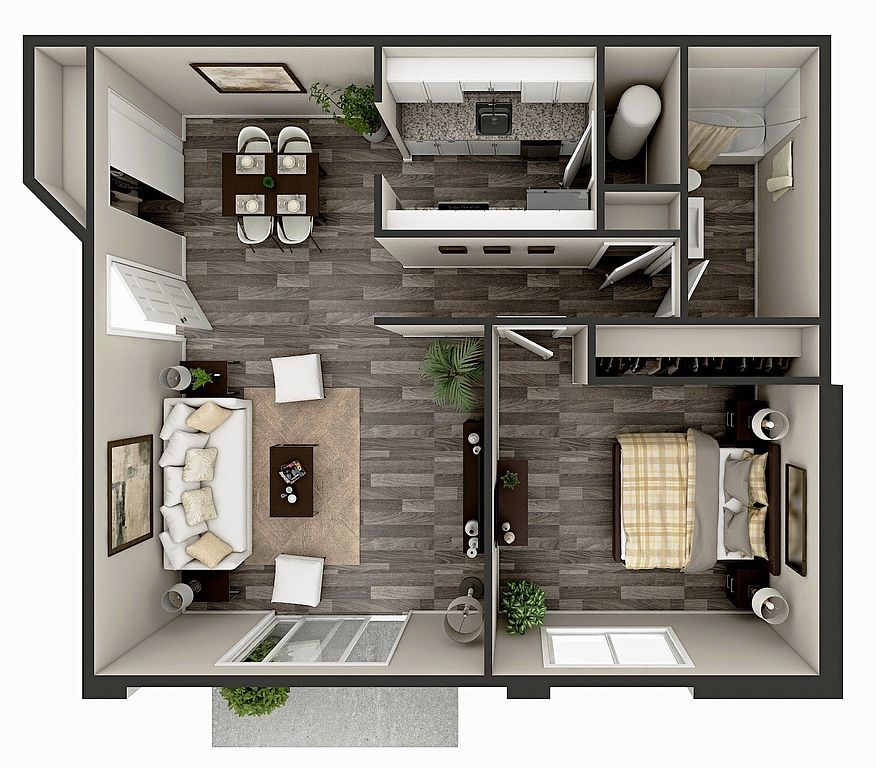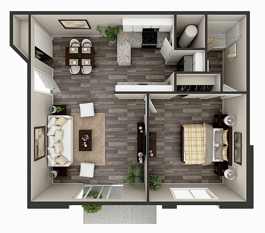 Studio 1 ba596 sqft
