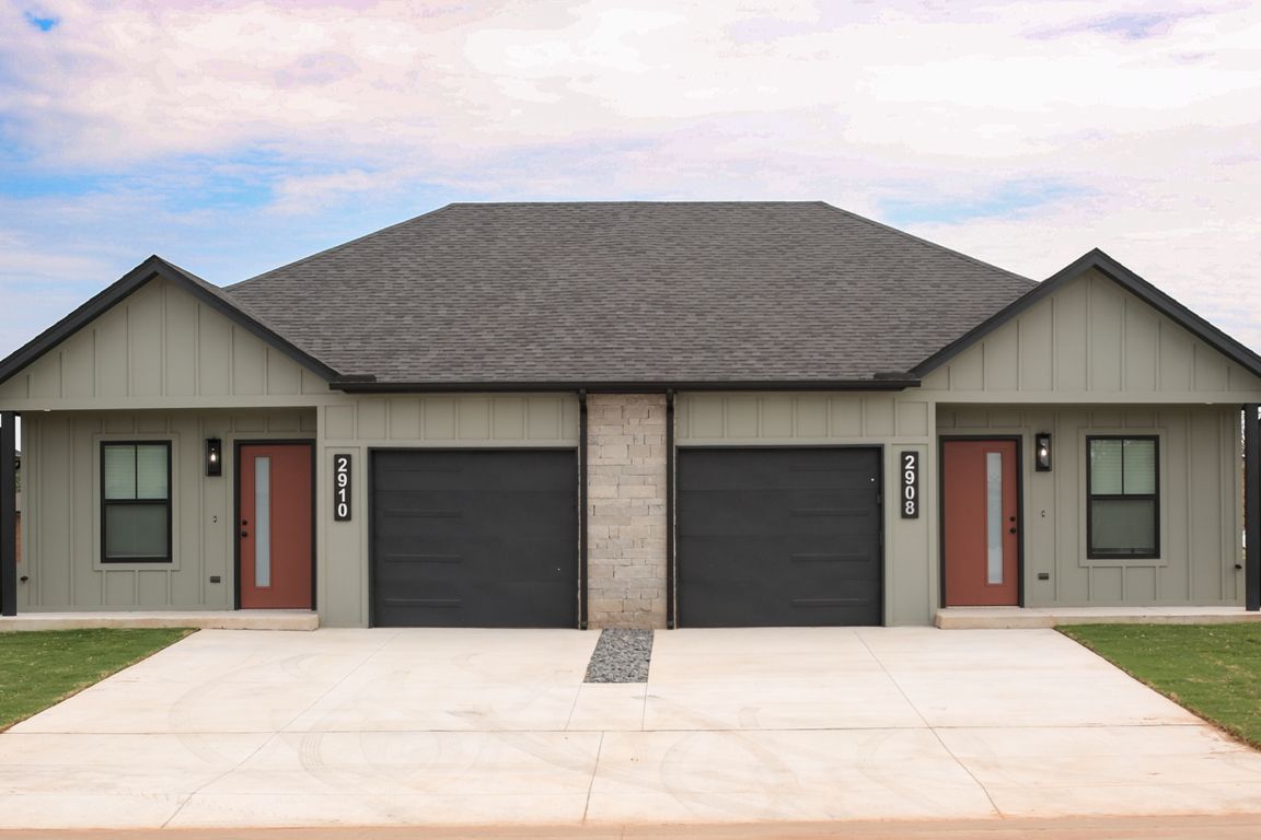 Luxury townhomes built in the heart of Midwest city. Units are all two large bedrooms, two full bathrooms and an oversized one car garage. Open floor plan, vinyl plank flooring throughout. Quartz countertops in the kitchen and on both vanities in bathrooms. Both showers are tiled from tub to ceiling. Each unit comes with a private backyard, including a back patio and a covered front porch. Stainless steel appliances, including a dishwasher, electric oven, microwave, garbage, disposal, and large farm style kitchen sink. All electric!