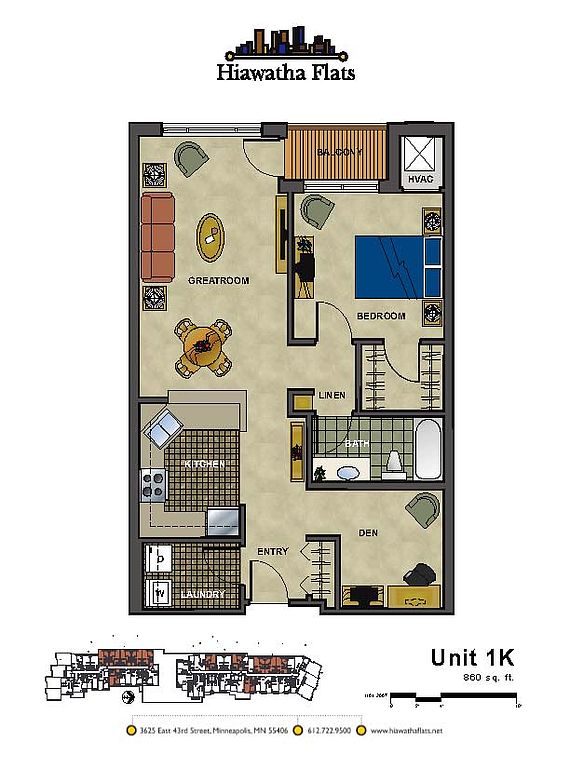 Newly remodeled apartment homes in an amenity galore building located in South Minneapolis! Located just 2 blocks from the 46th Street Light Rail Station, you are just moments away from downtown Minneapolis, Uptown, Highland Park, and Bloomington! Located between downtown Minneapolis and the Minneapolis/St. Paul Airport & Mall of America, you are within walking distance to Minnehaha Falls and Minneapolis' finest lakes and bike trails. Designed for contemporary living, each spacious apartment has generous closets, 9-foot ceilings, washer and dryer in-unit, natural maple cabinets and trim, stainless steel appliances, central media panel pre-wired for cable, telephone, and internet service. The majority of our homes have private balconies, some with downtown Minneapolis views. You will also appreciate heated underground parking for vehicles and bicycles, along with a car wash bay. The entire first level is dedicated to amenities, including a resort-style indoor pool and spa, sauna, fitness center, social party rooms, club room with fireplace, game room, and home theatre entertaining room. Visit us today and experience the beauty and convenience of Hiawatha Flats!
