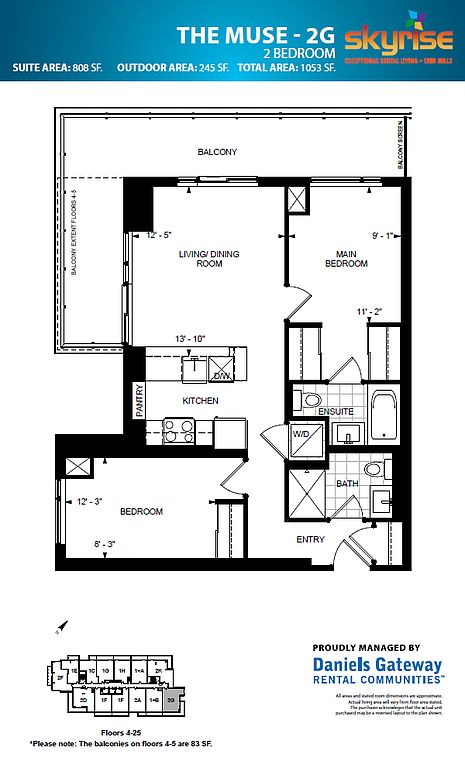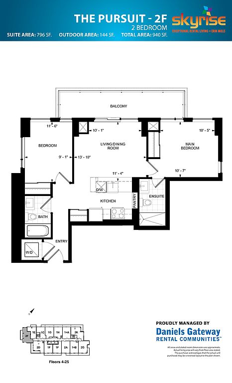 Skyrise rises 25-storeys at the southwest corner of Erin Mills Parkway and Eglinton Avenue West. Located within our highly sought after Daniels Erin Mills master-planned community, Skyrise has been designed to provide you with an exceptional rental experience. With immediate occupancies available on select suites, now is the time to take advantage of rental living unlike anything else offered in Erin Mills today. An exceptional location, exceptional suite features and finishes and exclusive-to-tenant building amenities all add up to an exceptional lifestyle at Skyrise.