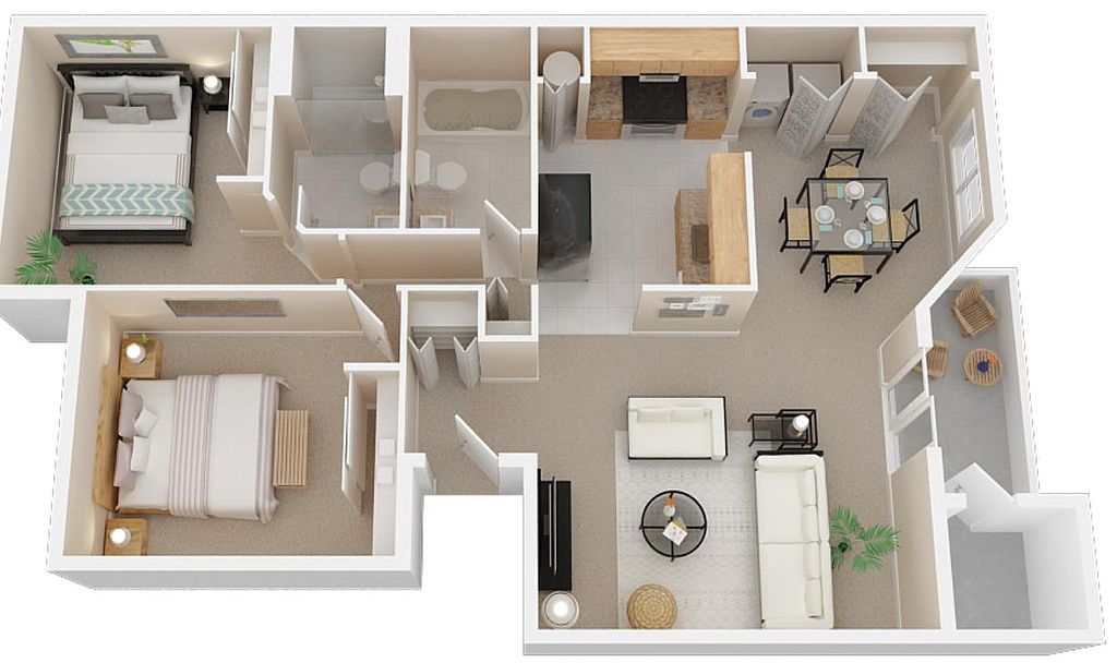 Our community features both one and two bedroom apartments in Modesto, CA that are airy and bright with an abundance of closet space and full-size washer and dryer connections. The open kitchen and spacious dining room creates a roomy living area that is ideal for entertaining or for relaxing after a long day. Large windows compliment your living space, bringing in natural light to capture the beautiful designer accent wall. "The Dunhaven", our largest floor plan with two bedrooms and two baths, also has an en-suite bathroom located in the master bedroom.