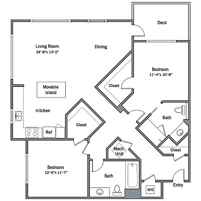 With ten acres of serene landscaping, the only thing greener than the lush grounds of Madrone Apartments will be the shade of your friends' envy when they visit. The wooded paradise of these Mountain View apartments truly has no equal. All-new insides feature stainless-steel kitchens, granite countertops, designer lighting, smart home tech, and cottage-style patios or balconies. No need to sweat the commute either. Madrone is located smack dab in the middle of big time tech employers like Google, Apple, and Lockheed Martin. And when you need to get outside you're just a short trip from Stevens Creek Trail hiking and the Saturday farmer's market. or hop on the San Antonio Caltrain or VTAstations are less than half a mile away.