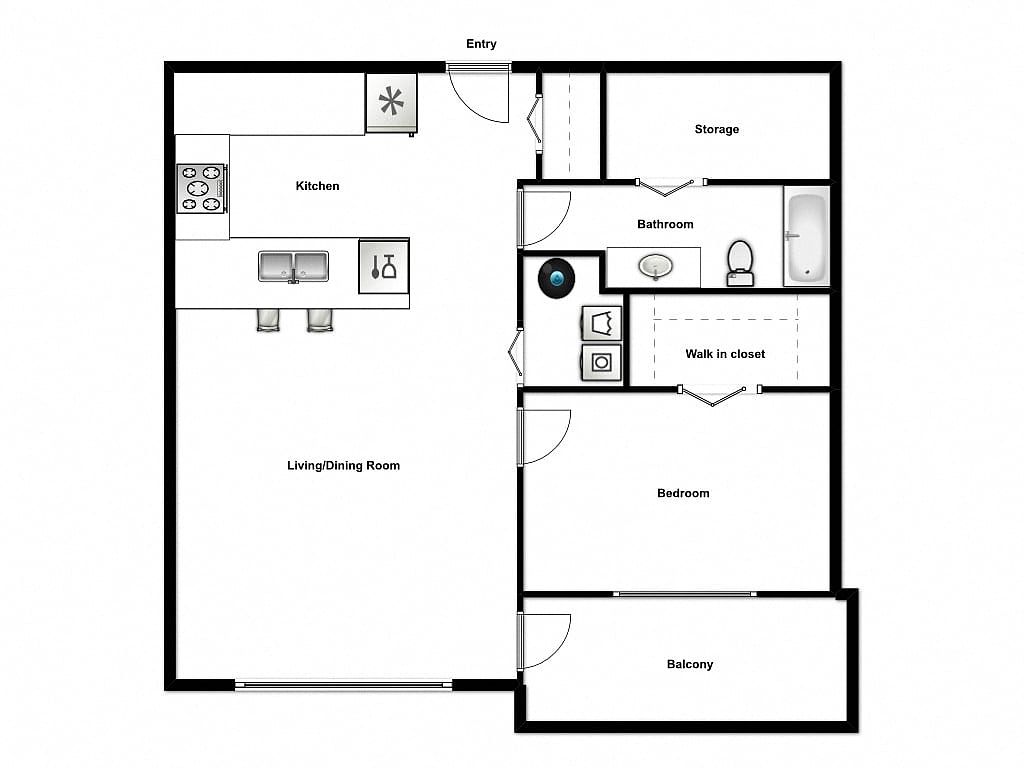 1 bdrm 1 bath 531 sq ft.