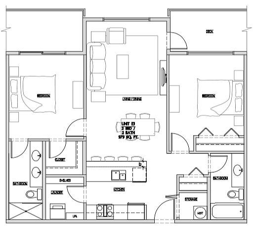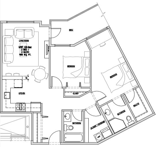 2 bdrm 2 bath 856 sq ft.