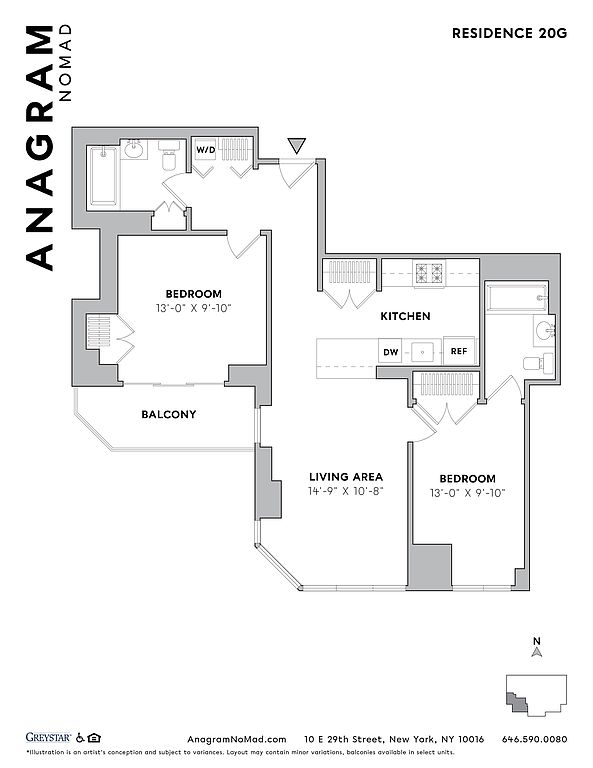 Yes, Anagram Nomad has in-unit laundry for some or all of the units. Anagram Nomad also has shared building laundry.