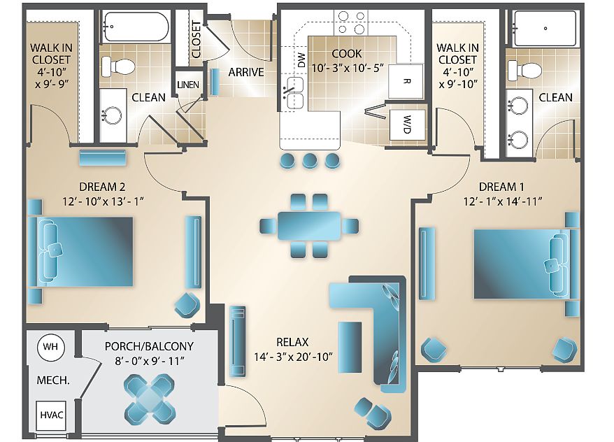 - Dryer: Full size Washer & Dryer in Every Apartment