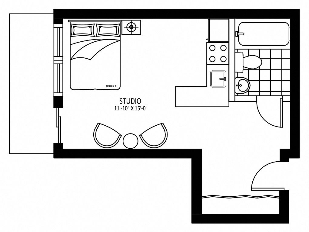 Studio-1 bed