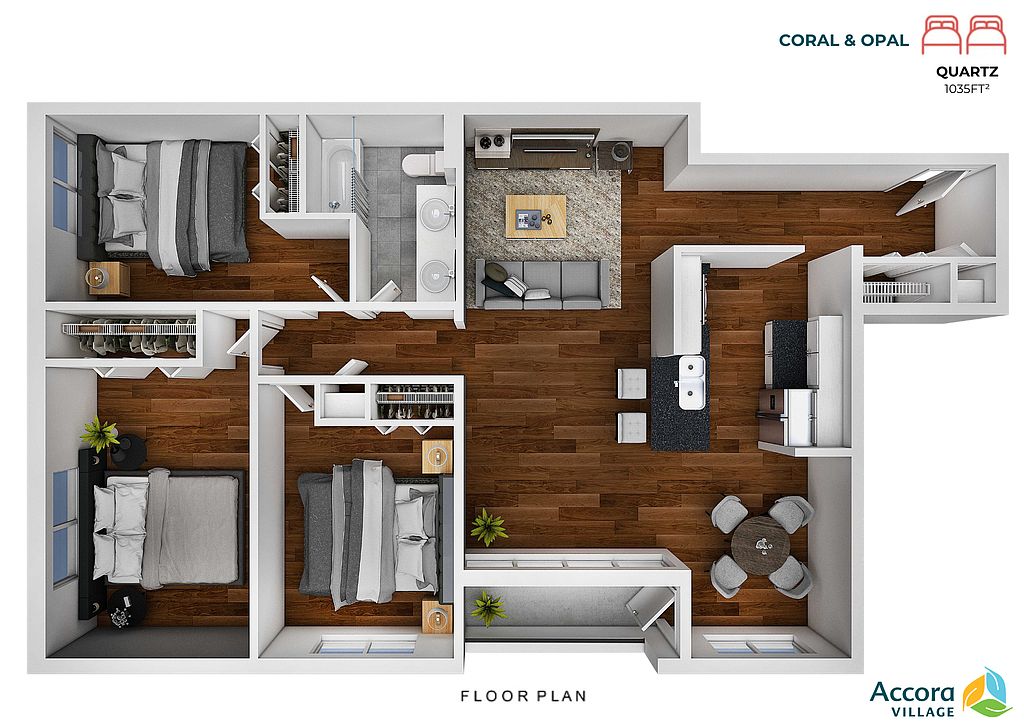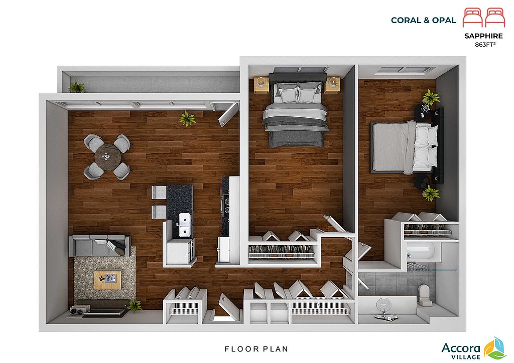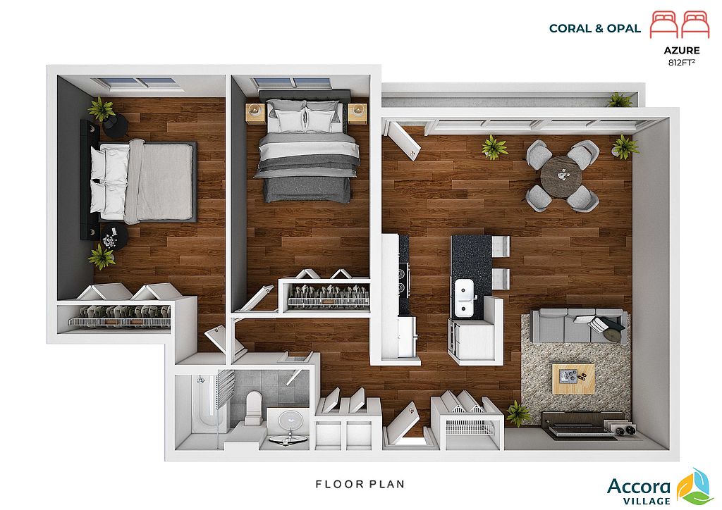 Residents of The Coral receive access to the Accora Centre, a fitness facility that features indoor and outdoor swimming pools, weight room, cardio room, fitness studio and gymnasium. The Accora Centre has a variety of fitness and lifestyle programs and classes for all age groups.