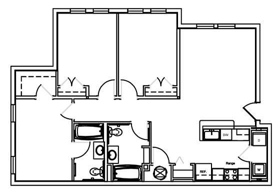 2 bd2 ba1.1K sqft