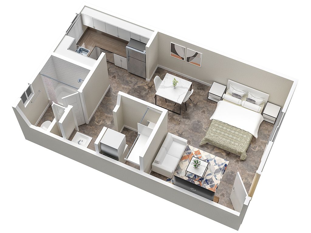 Rent: $895 (1 Bed 1 Bath) $795 (Studio)