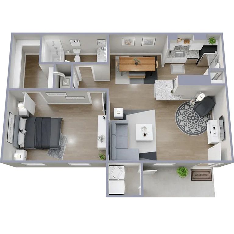 Choose from spacious one, two, and three-bedroom floor plans, each thoughtfully designed with in-home washers and dryers, generous walk-in closets, wood-style plank flooring, and sleek stainless steel appliances. Enjoy modern touches like quartz countertops, decorative tile backsplash, undermount sinks with gooseneck faucets, and high-speed internet access to keep your home both stylish and functional.