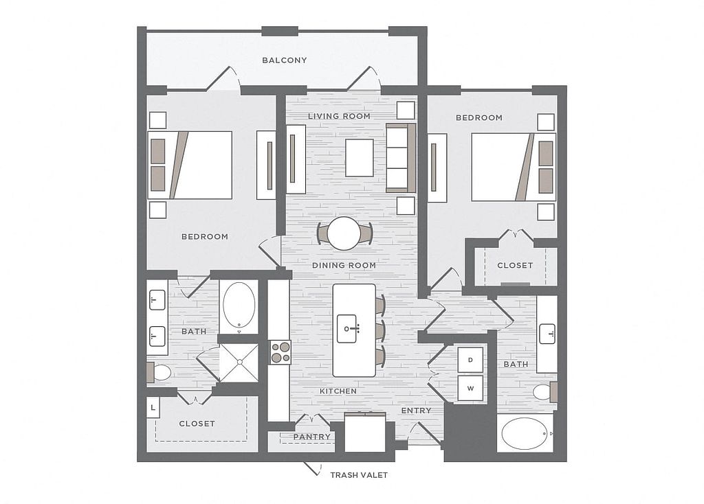 Welcome to The Huntington Apartments, an upscale community that redefines sophistication and refinement in every detail of our studios, 1, and 2 bedroom apartments. Residences offer thoughtful amenities like polished granite countertops, a herringbone tile kitchen backsplash, and wood-style flooring throughout the kitchen, living room, and bath. Plus, the hotel-style architecture creates a resort-style setting where residents can enjoy an upscale pool with private cabanas, an extensive fitness center, and social lounge. Nearby you'll find restaurants like Benihana, Seasons 52, and Holy Grail Pub. Stonebriar Centre, The Shops at Legacy, and The Star District put high-end shopping just minutes away.