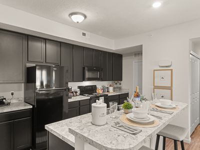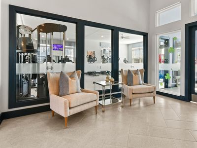 Outdoor fitness areasVegas-style heated poolOutdoor kitchenGranite countertopsWhite trim and doorsBocce ballBrand-new luxury suites