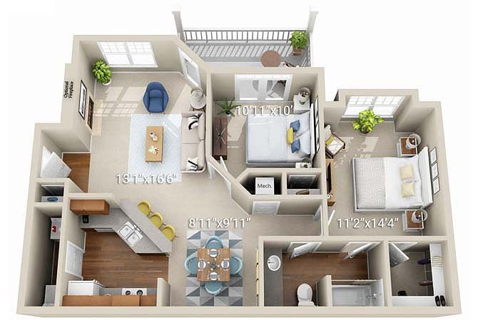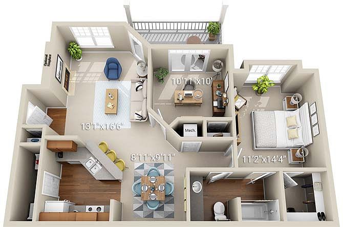 - 1-, 2- & 3-bedroom Apartments Up To 1300 Sq. Ft.
